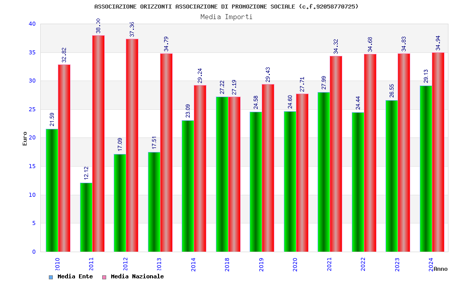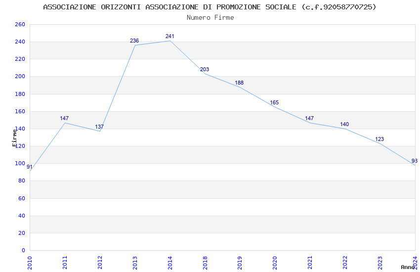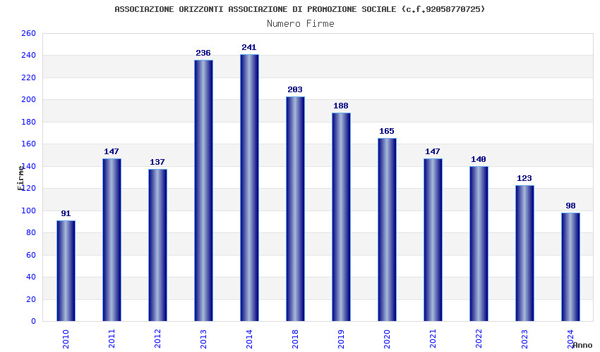 | Anno | Firme | Importi | Media | Naz. | Reg. | Prov. | Comu. |