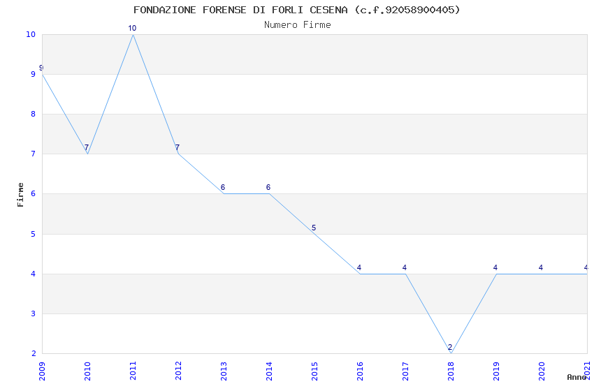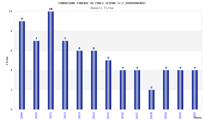| Anno | Firme | Importi | Media | Naz. | Reg. | Prov. | Comu. |