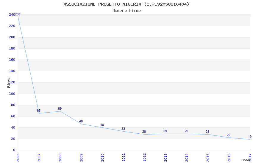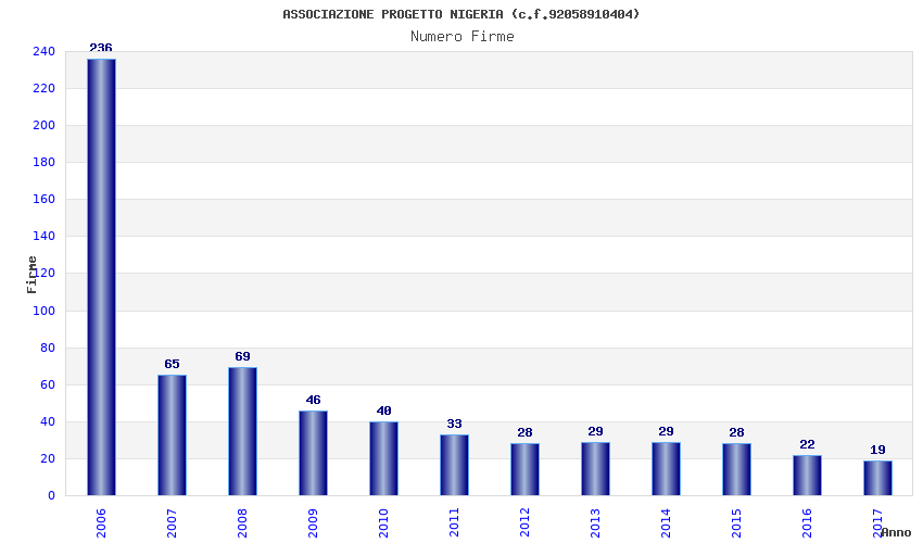 | Anno | Firme | Importi | Media | Naz. | Reg. | Prov. | Comu. |