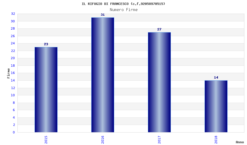| Anno | Firme | Importi | Media | Naz. | Reg. | Prov. | Comu. |