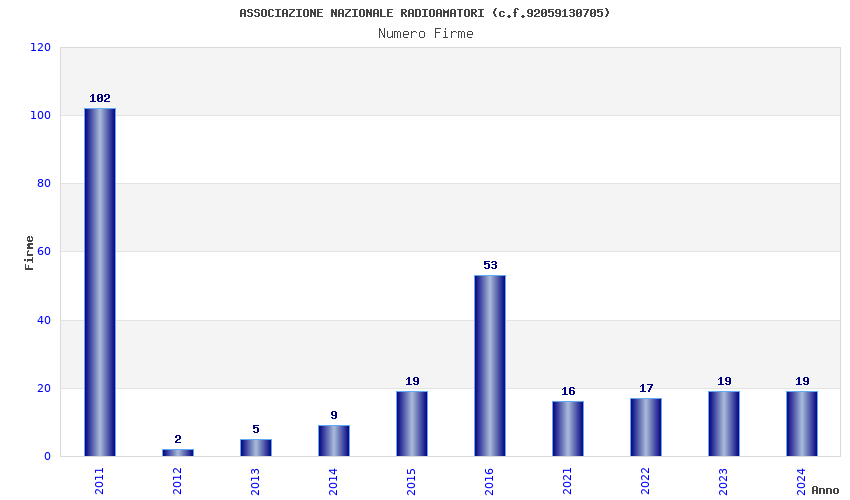 | Anno | Firme | Importi | Media | Naz. | Reg. | Prov. | Comu. |