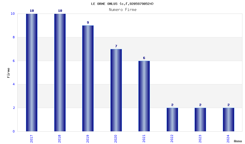 | Anno | Firme | Importi | Media | Naz. | Reg. | Prov. | Comu. |