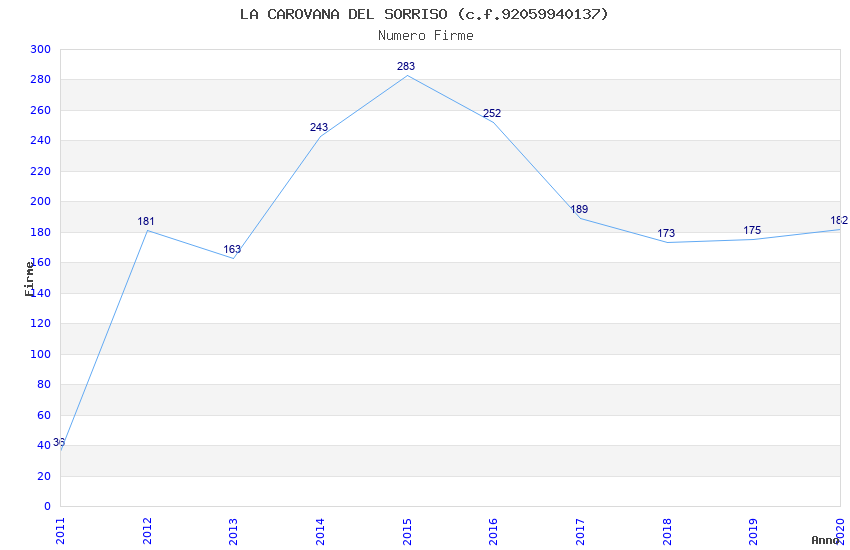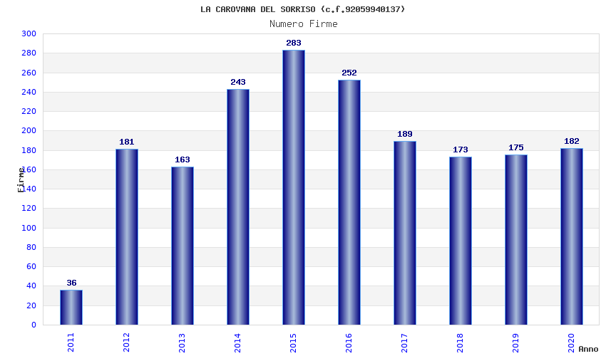 | Anno | Firme | Importi | Media | Naz. | Reg. | Prov. | Comu. |