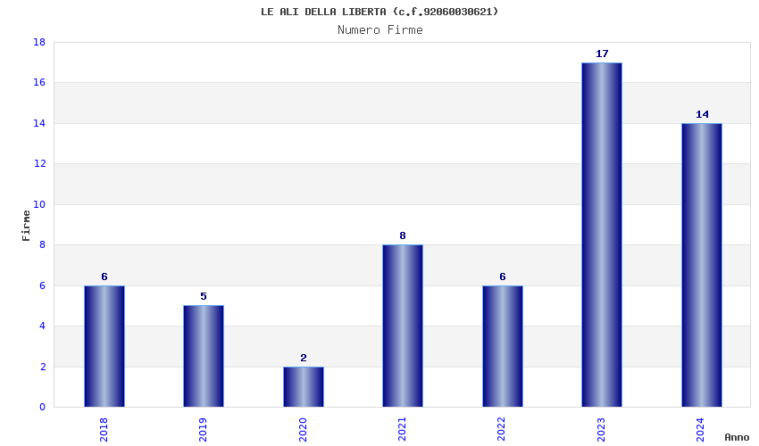 | Anno | Firme | Importi | Media | Naz. | Reg. | Prov. | Comu. |
