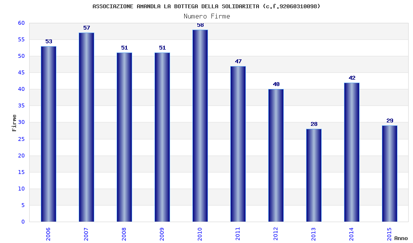 Anno Firme Importi Media Naz. Reg. Prov. Comu.