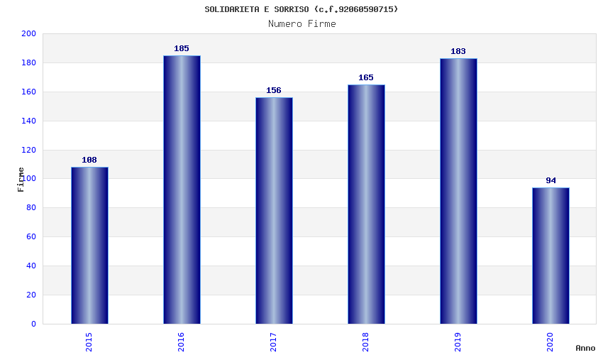 | Anno | Firme | Importi | Media | Naz. | Reg. | Prov. | Comu. |