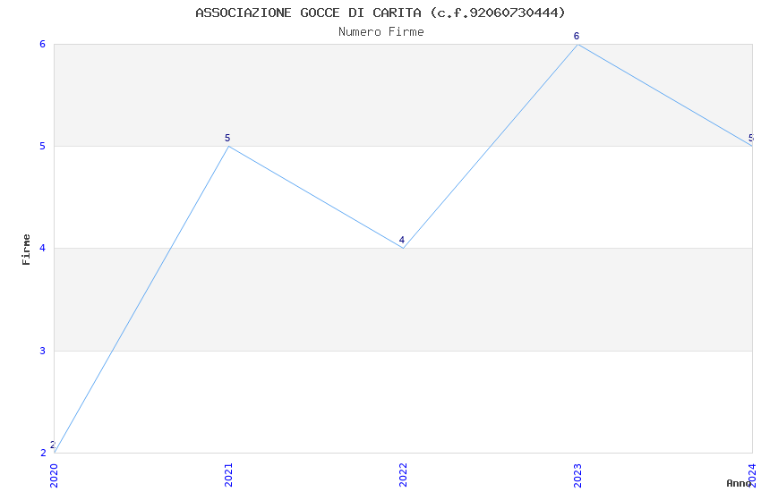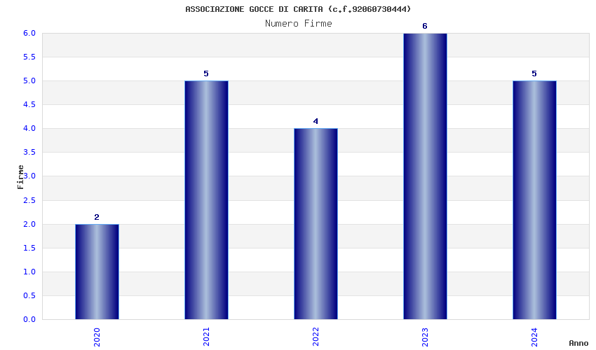 | Anno | Firme | Importi | Media | Naz. | Reg. | Prov. | Comu. |