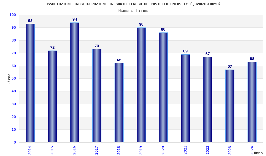 | Anno | Firme | Importi | Media | Naz. | Reg. | Prov. | Comu. |