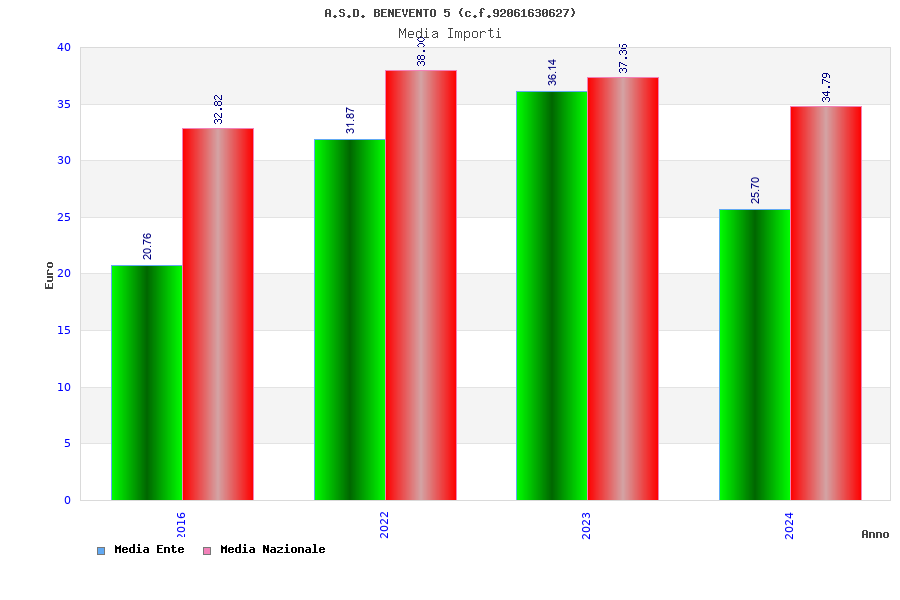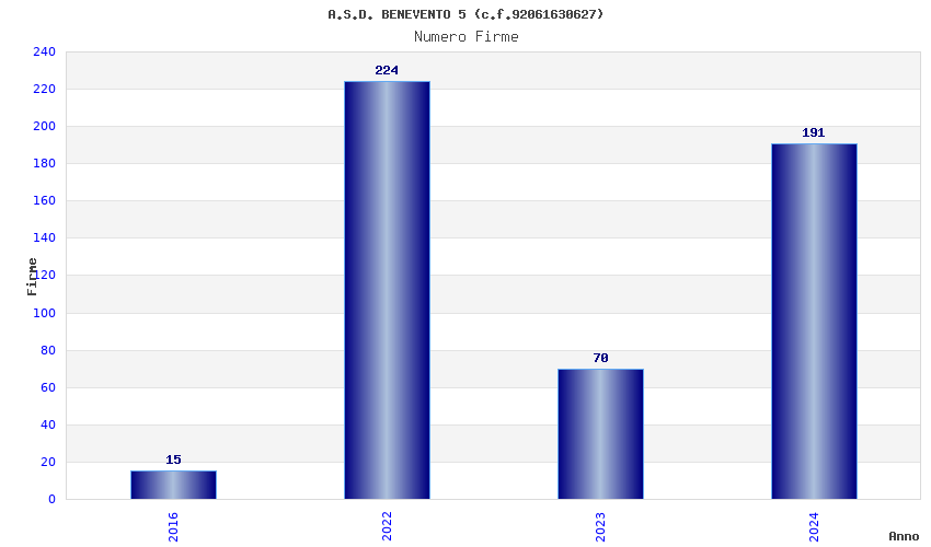 | Anno | Firme | Importi | Media | Naz. | Reg. | Prov. | Comu. |