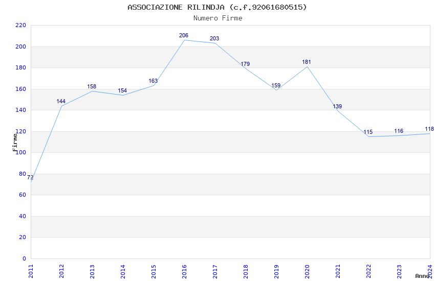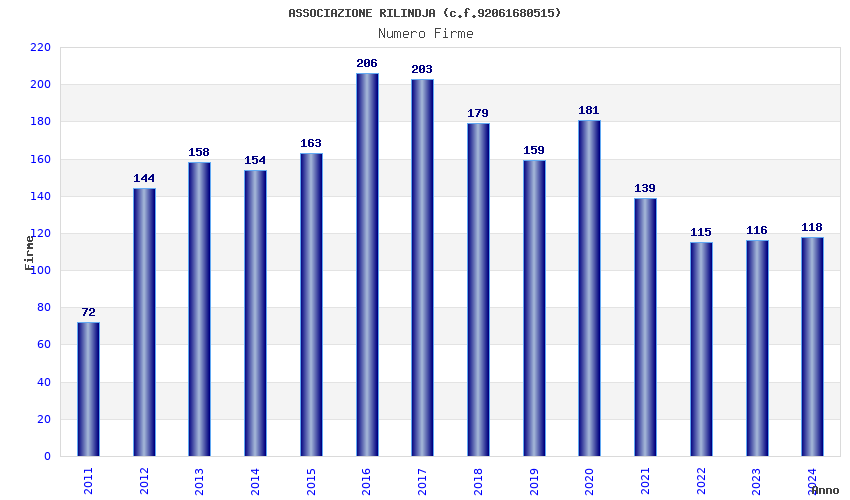 | 2016 | 206 | 2.341,33 | 11,37 | 20.546 | 1.275 | 115 | 48 |