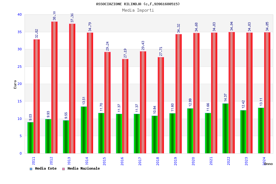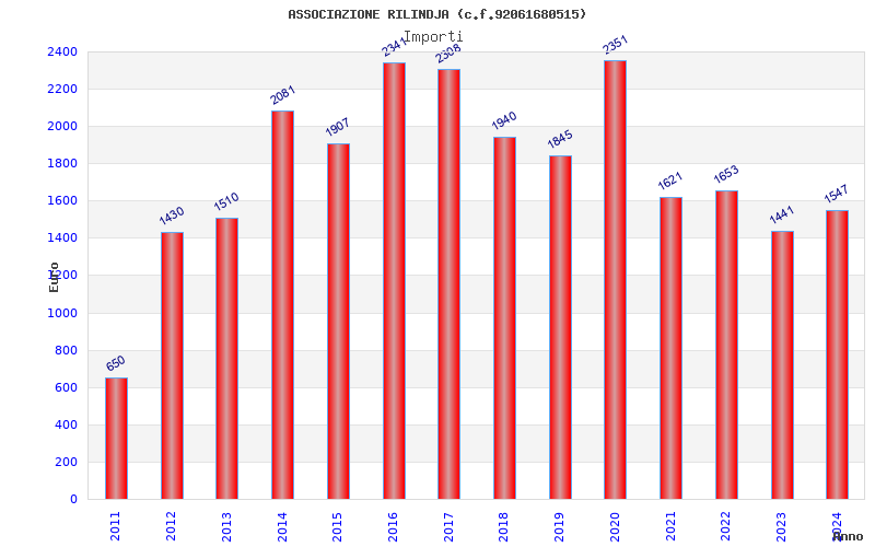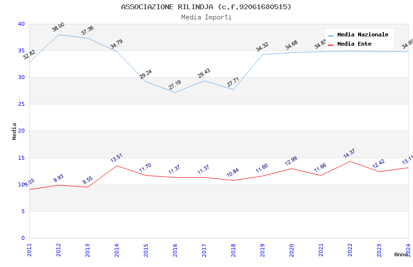 | Anno | Firme | Importi | Media | Naz. | Reg. | Prov. | Comu. |