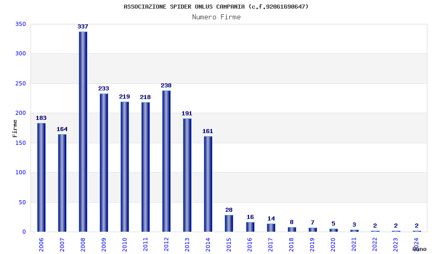 | Anno | Firme | Importi | Media | Naz. | Reg. | Prov. | Comu. |