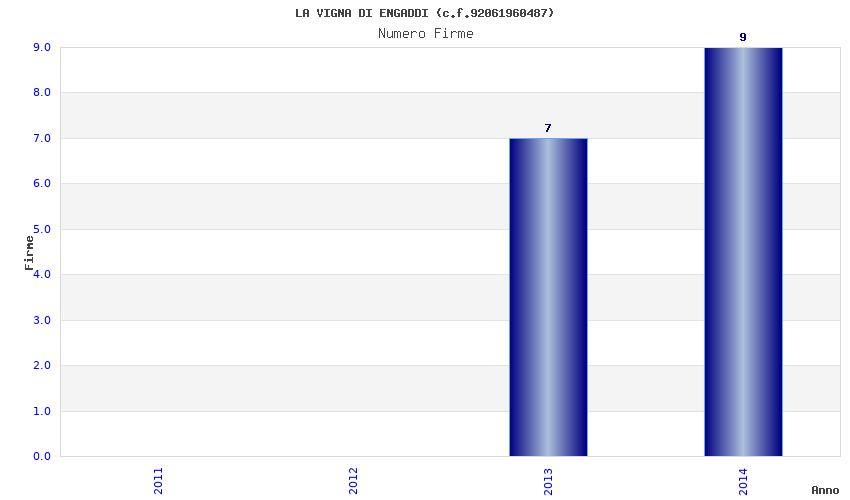 | Anno | Firme | Importi | Media | Naz. | Reg. | Prov. | Comu. |