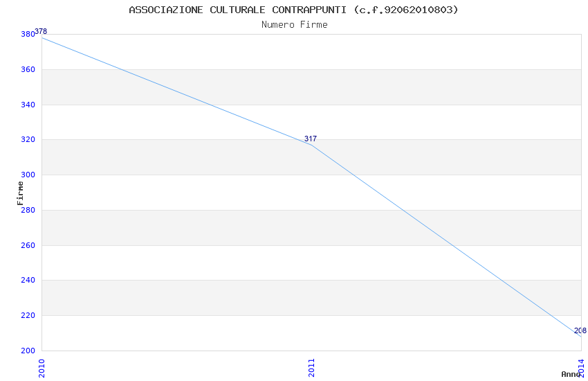 | Anno | Firme | Importi | Media | Naz. | Reg. | Prov. | Comu. |