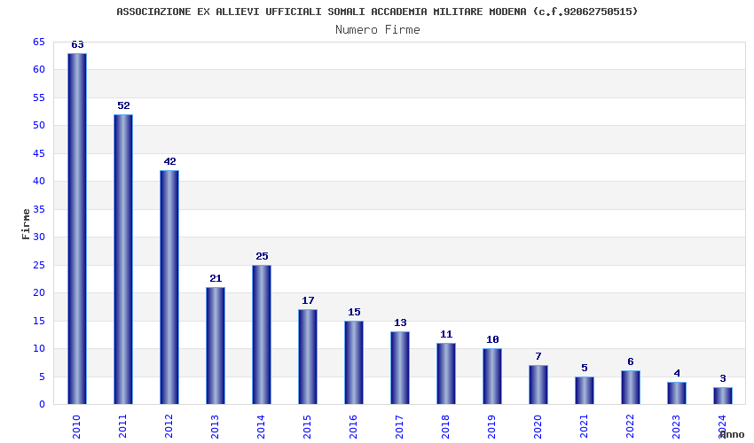 | Anno | Firme | Importi | Media | Naz. | Reg. | Prov. | Comu. |