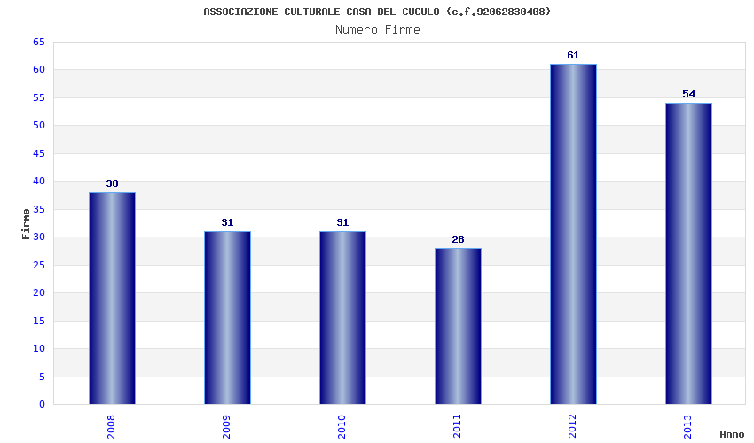 | Anno | Firme | Importi | Media | Naz. | Reg. | Prov. | Comu. |