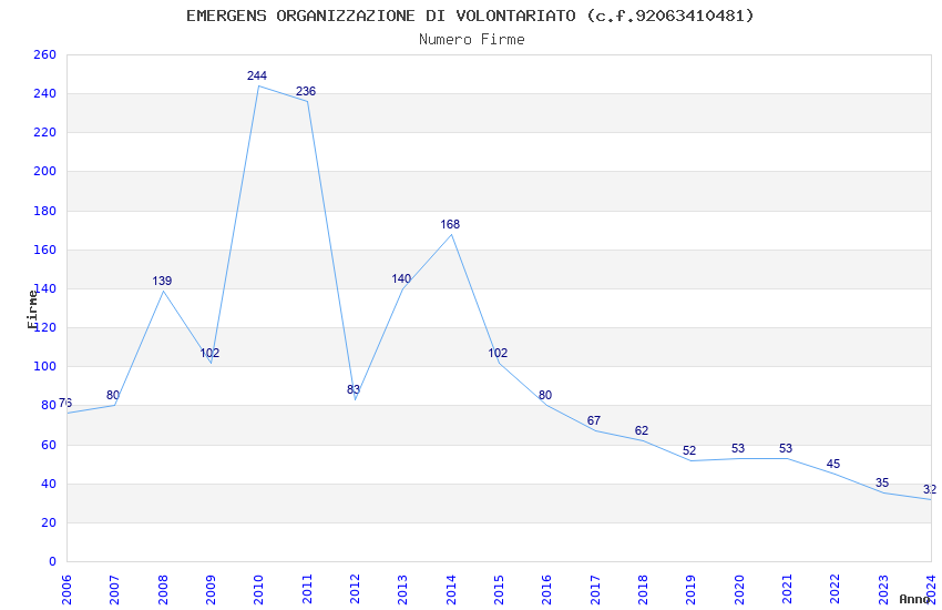 | 2007 | 80 | 2.970,64 | 37,13 | 10.560 | 723 | 34 | 32 |