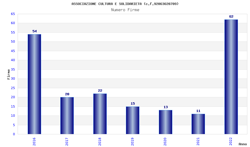 | Anno | Firme | Importi | Media | Naz. | Reg. | Prov. | Comu. |