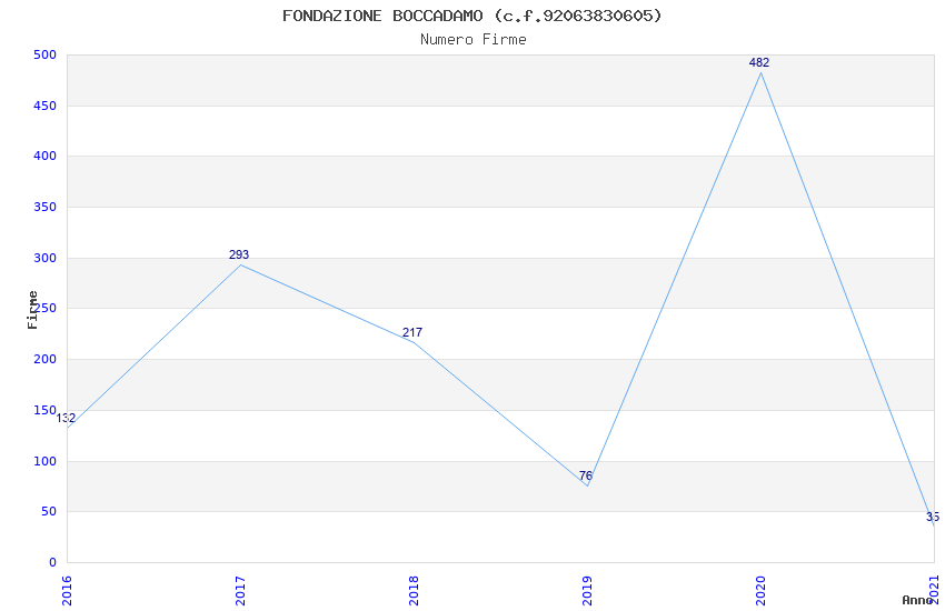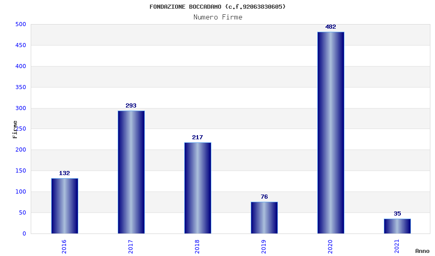 | Anno | Firme | Importi | Media | Naz. | Reg. | Prov. | Comu. |