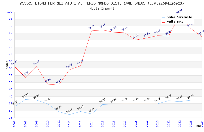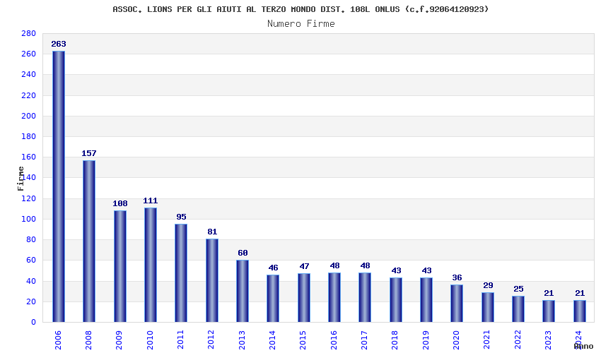 | Anno | Firme | Importi | Media | Naz. | Reg. | Prov. | Comu. |