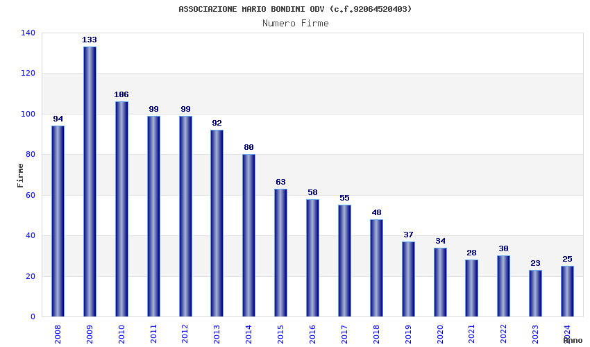 | Anno | Firme | Importi | Media | Naz. | Reg. | Prov. | Comu. |