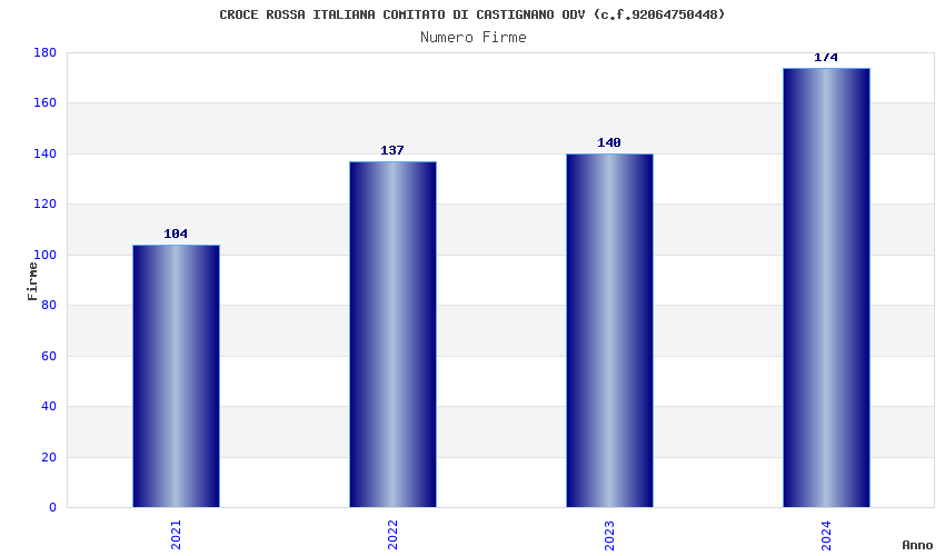 | Anno | Firme | Importi | Media | Naz. | Reg. | Prov. | Comu. |