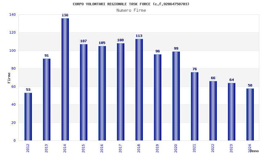 | Anno | Firme | Importi | Media | Naz. | Reg. | Prov. | Comu. |