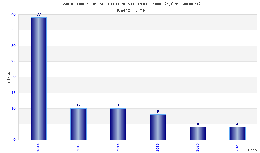 | Anno | Firme | Importi | Media | Naz. | Reg. | Prov. | Comu. |
