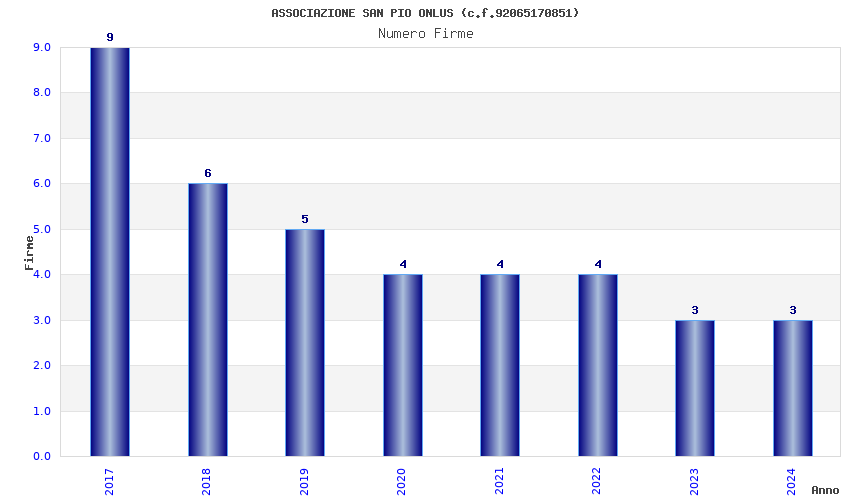 | Anno | Firme | Importi | Media | Naz. | Reg. | Prov. | Comu. |