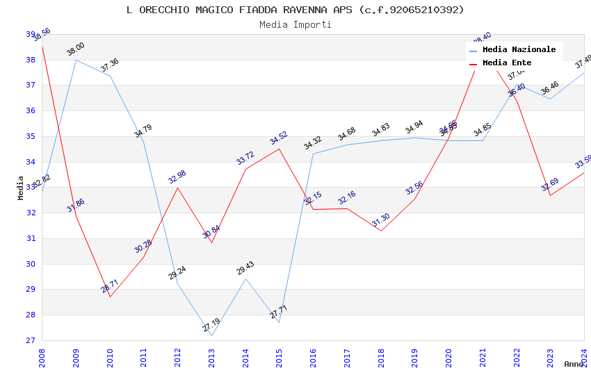 | Anno | Firme | Importi | Media | Naz. | Reg. | Prov. | Comu. |