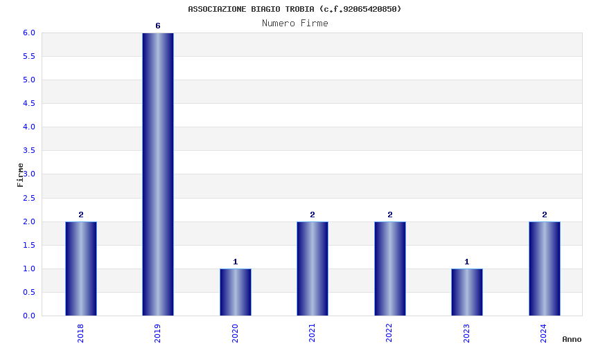 | Anno | Firme | Importi | Media | Naz. | Reg. | Prov. | Comu. |