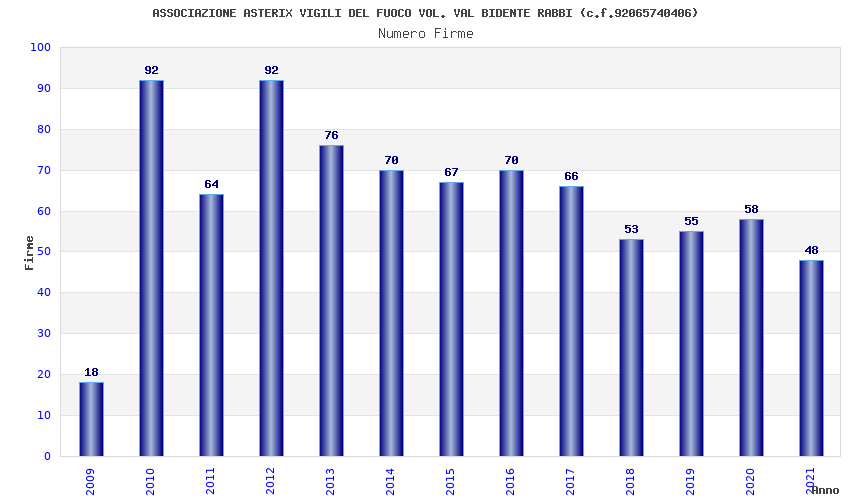| Anno | Firme | Importi | Media | Naz. | Reg. | Prov. | Comu. |