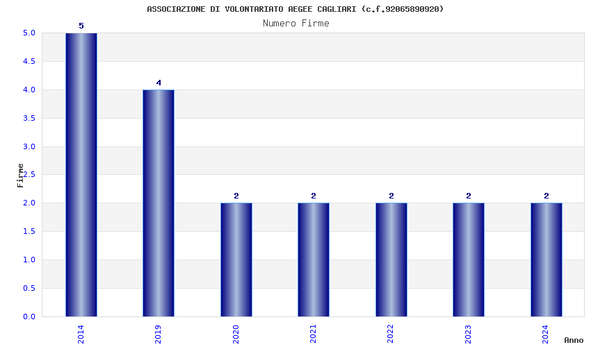 | Anno | Firme | Importi | Media | Naz. | Reg. | Prov. | Comu. |