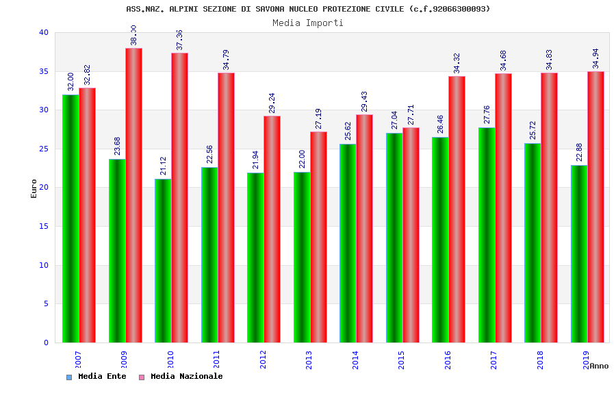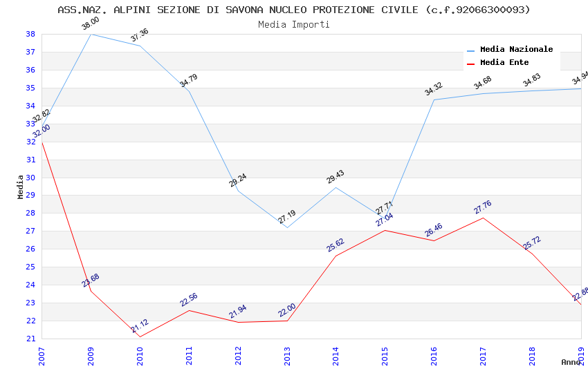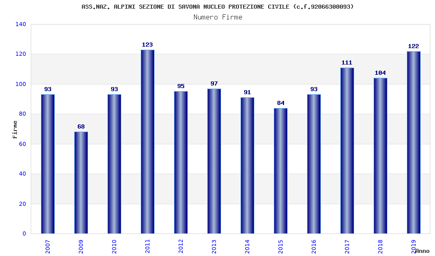 | Anno | Firme | Importi | Media | Naz. | Reg. | Prov. | Comu. |