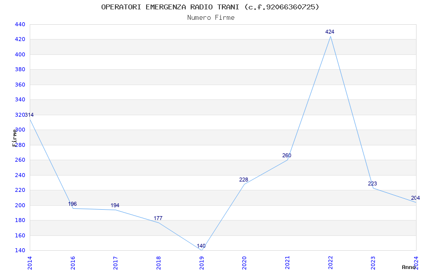 | 2022 | 424 | 9.776,17 | 23,06 | 5.126 | 242 | 14 | 3 |