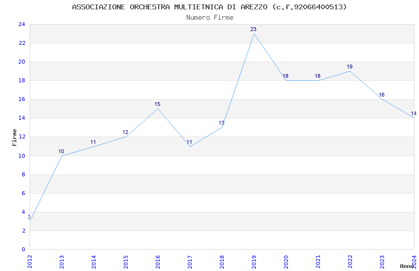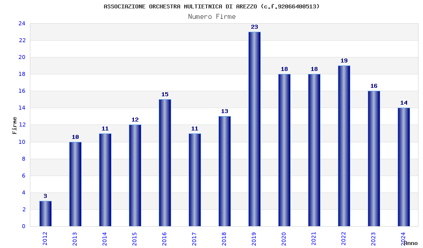 | Anno | Firme | Importi | Media | Naz. | Reg. | Prov. | Comu. |