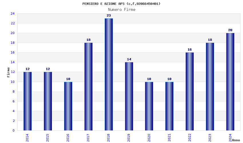 | Anno | Firme | Importi | Media | Naz. | Reg. | Prov. | Comu. |