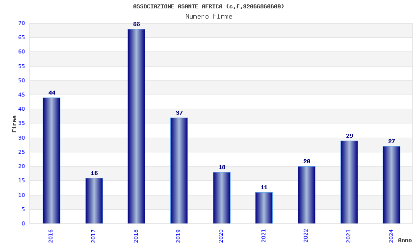 | Anno | Firme | Importi | Media | Naz. | Reg. | Prov. | Comu. |