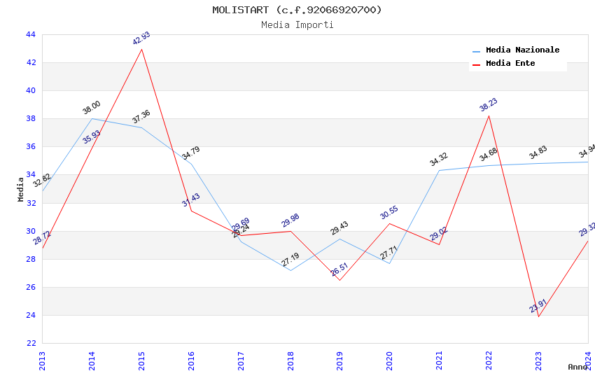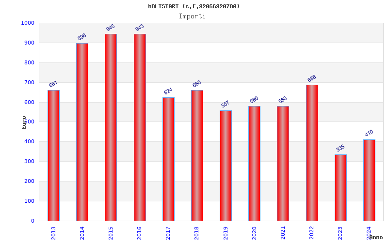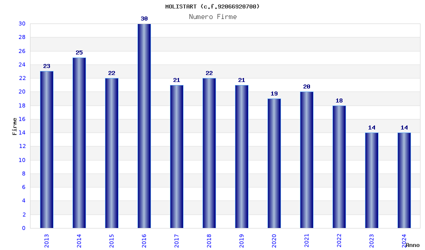 | Anno | Firme | Importi | Media | Naz. | Reg. | Prov. | Comu. |
