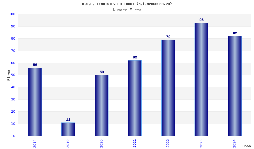 | Anno | Firme | Importi | Media | Naz. | Reg. | Prov. | Comu. |