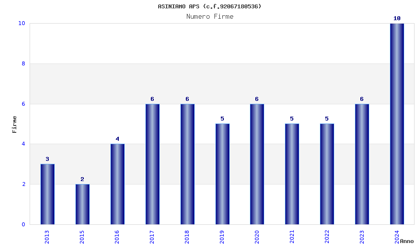 Anno Firme Importi Media Naz. Reg. Prov. Comu.