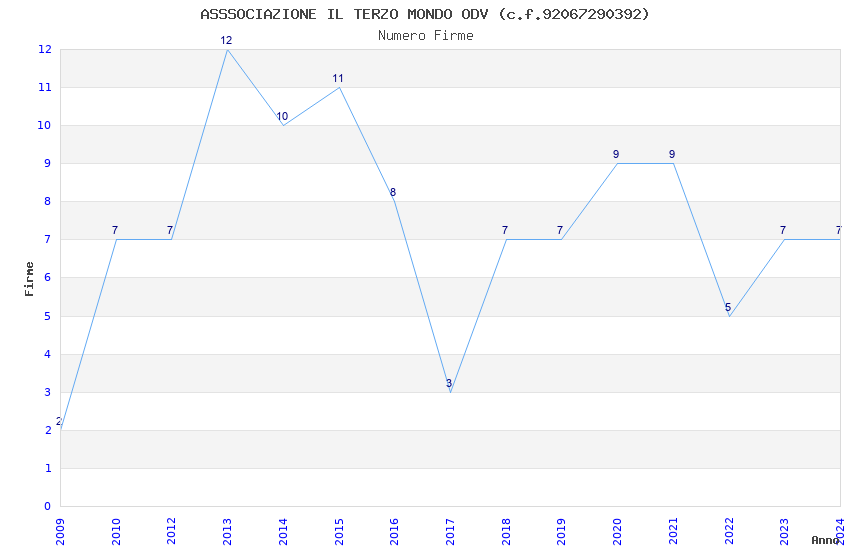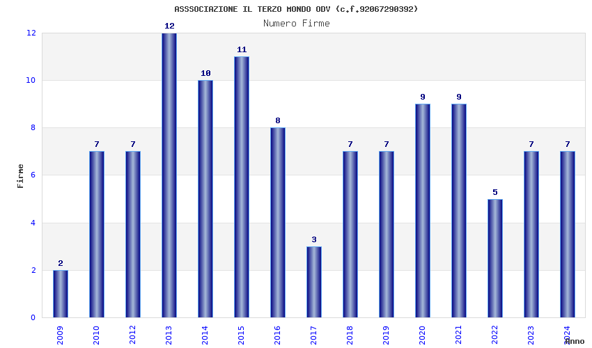| Anno | Firme | Importi | Media | Naz. | Reg. | Prov. | Comu. |