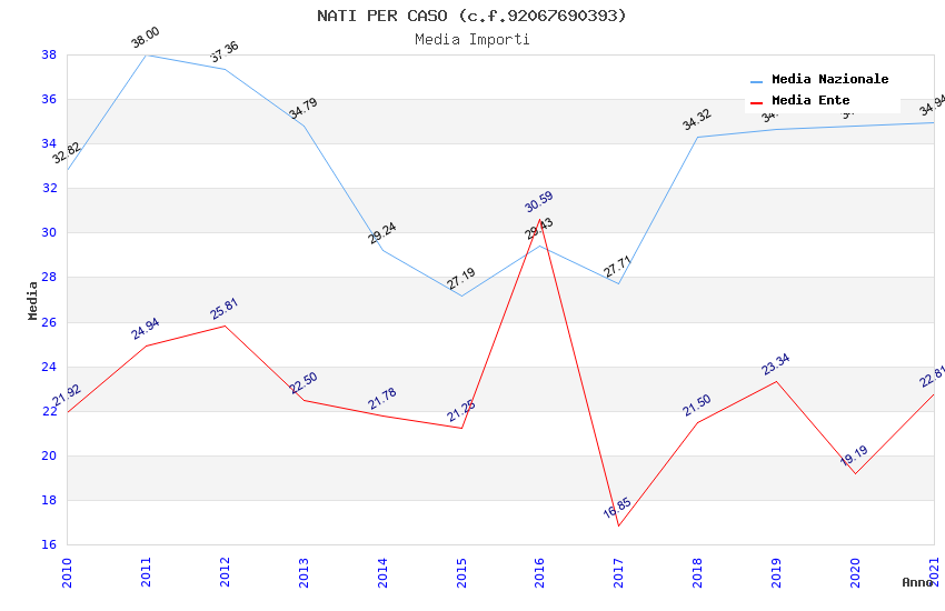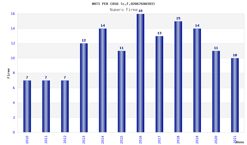 | Anno | Firme | Importi | Media | Naz. | Reg. | Prov. | Comu. |