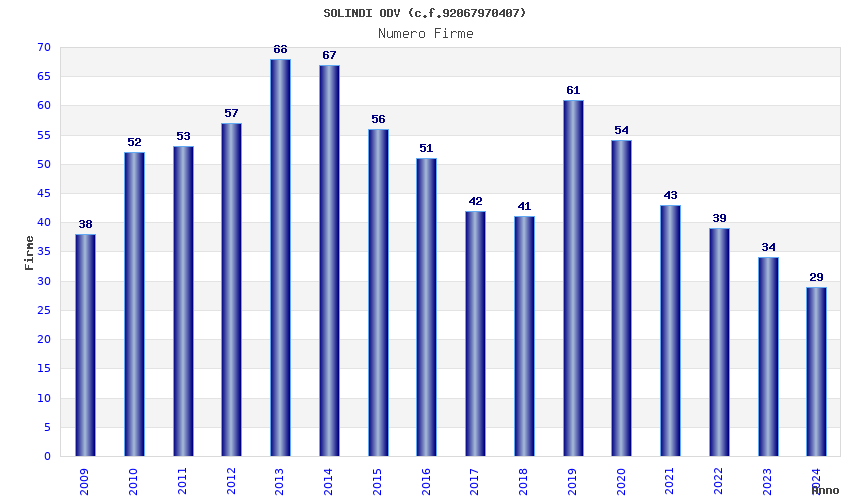 | Anno | Firme | Importi | Media | Naz. | Reg. | Prov. | Comu. |