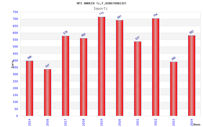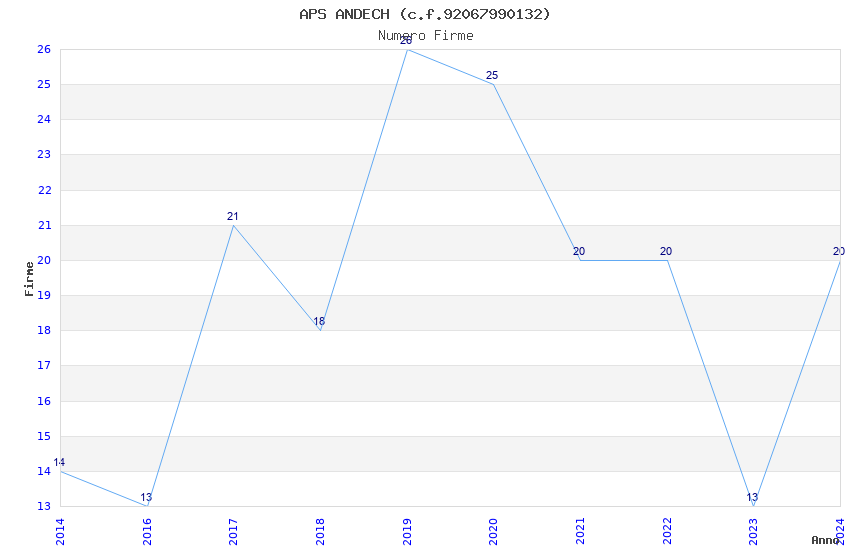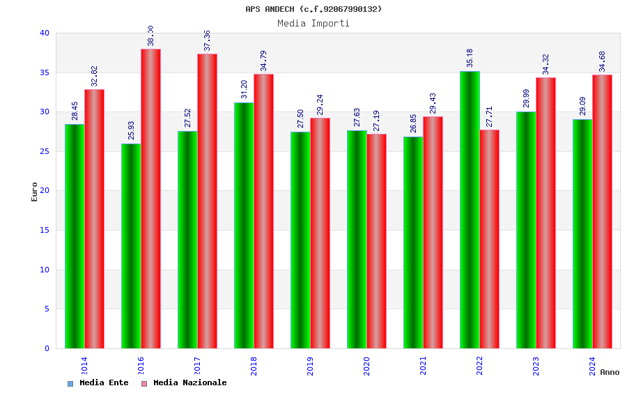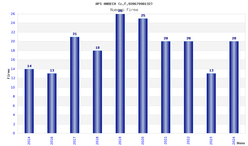 | Anno | Firme | Importi | Media | Naz. | Reg. | Prov. | Comu. |