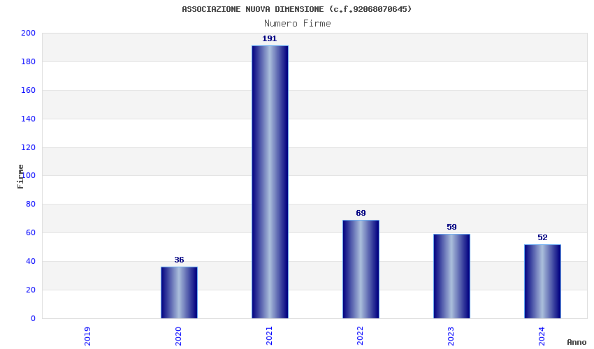 | Anno | Firme | Importi | Media | Naz. | Reg. | Prov. | Comu. |