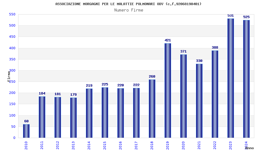 | Anno | Firme | Importi | Media | Naz. | Reg. | Prov. | Comu. |