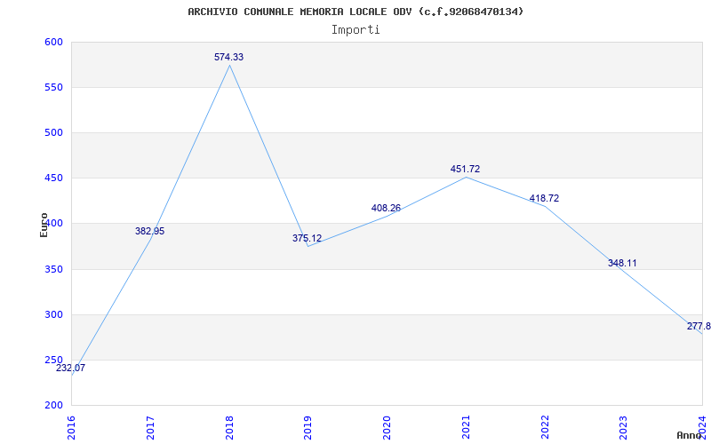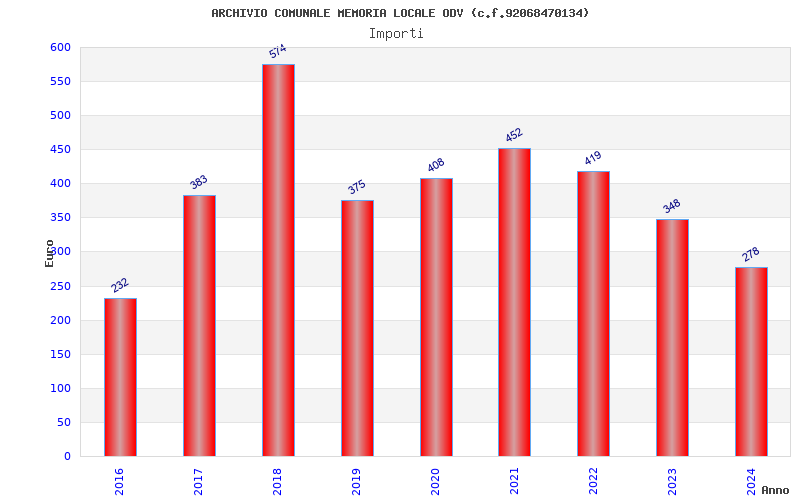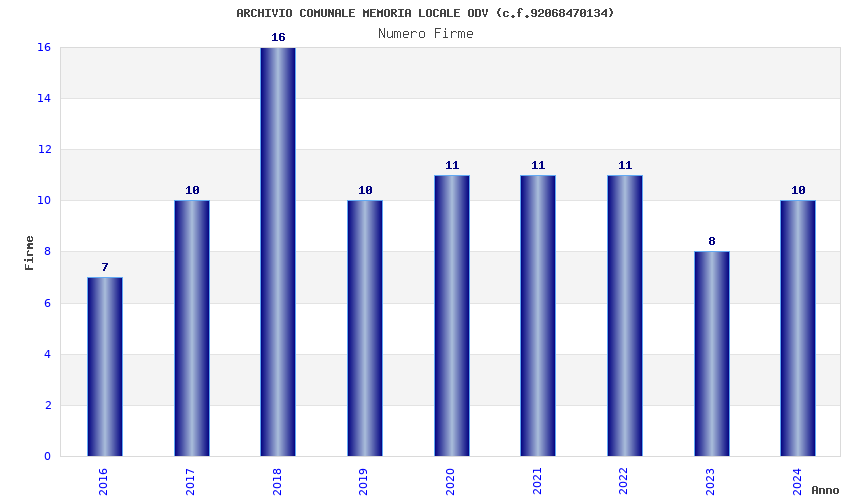 | Anno | Firme | Importi | Media | Naz. | Reg. | Prov. | Comu. |