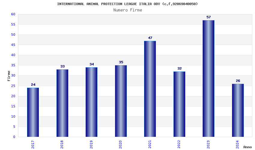 | Anno | Firme | Importi | Media | Naz. | Reg. | Prov. | Comu. |