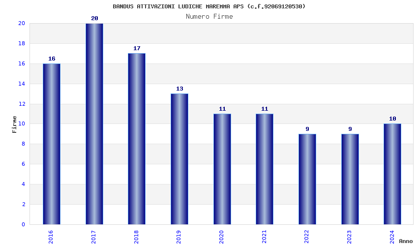| Anno | Firme | Importi | Media | Naz. | Reg. | Prov. | Comu. |